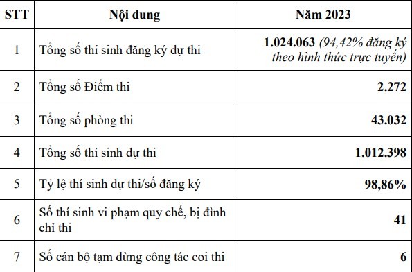 Số liệu chung của Kỳ thi tốt nghiệp THPT năm 2023.