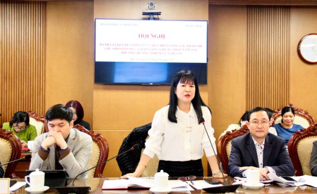 Tại hội nghị, bà Đỗ Thị Thanh Hương, Phó Vụ trưởng Vụ Các vấn đề chung về xây dựng pháp luật, Bộ Tư pháp đã trình bày dự thảo Kế hoạch phối hợp thực hiện công tác pháp chế giữa Bộ GD&ĐT và Bộ Tư pháp năm 2025. Kế hoạch này là căn cứ để Bộ GD&ĐT, Bộ Tư pháp chỉ đạo, triển khai, tổ chức thực hiện, kiểm tra, đánh giá việc thực hiện nhiệm vụ công tác pháp chế ngành Giáo dục năm 2025 thiết thực và hiệu quả.