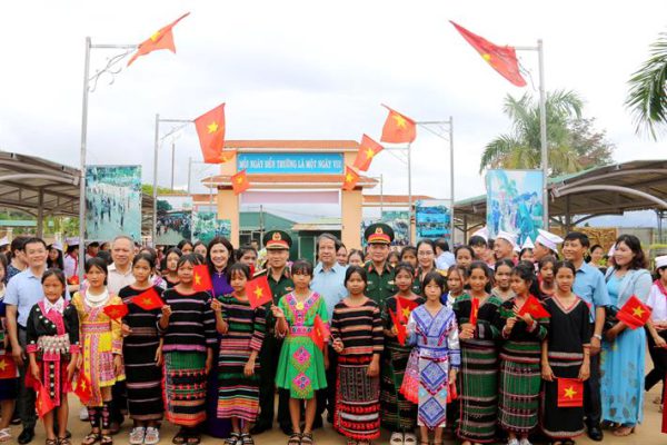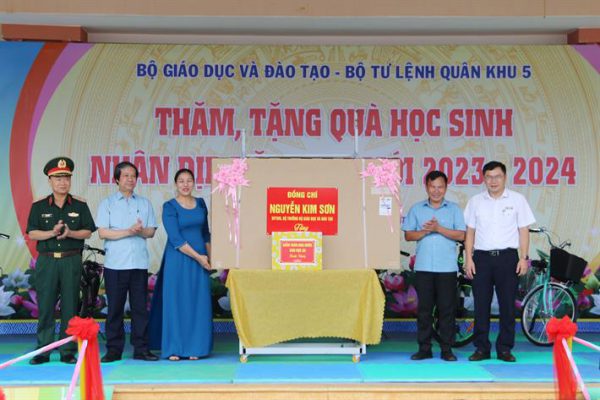 Tại Trường THCS Hoàng Văn Thụ và Trường Tiểu học Nơ Trang Lơng, huyện Đắk Glong, tỉnh Đắk Nông, Bộ trưởng Bộ GDĐT và Tư lệnh Quân khu 5 đã trao các phần quà tới học sinh các nhà trường.