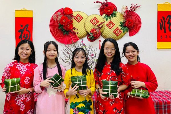 Đối với cấp học mầm non, tiểu học, trẻ tham gia phiên chợ quê, nhận biết nguyên liệu làm bánh chưng, học câu chúc Tết ông bà, cha mẹ. Đối với cấp THCS và THPT, học sinh được trải nghiệm thi gói bánh chưng, viết thư pháp, tham gia trò chơi dân gian… Một số trường còn tổ chức thi bày mâm ngũ quả, trình diễn trang phục dân tộc, gây quỹ dành tặng những phần quà đến học sinh có hoàn cảnh khó khăn.