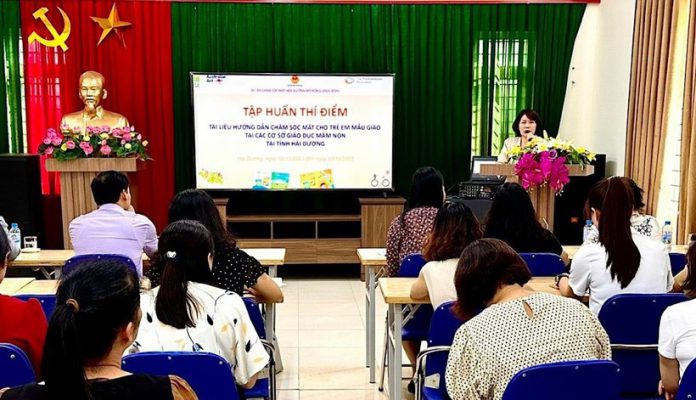 Ngày 2/10 tại Tp Hải Dương đã tổ chức tập huấn thí điểm tài liệu Hướng dẫn Chăm sóc mắt và phòng chống suy giảm thị lực cho trẻ em mẫu giáo.