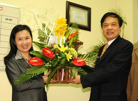 GS Lê Thị Thanh Nhàn nhận hoa chúc mừng từ lãnh đạo Đại học Thái Nguyên. Ảnh: NVCC