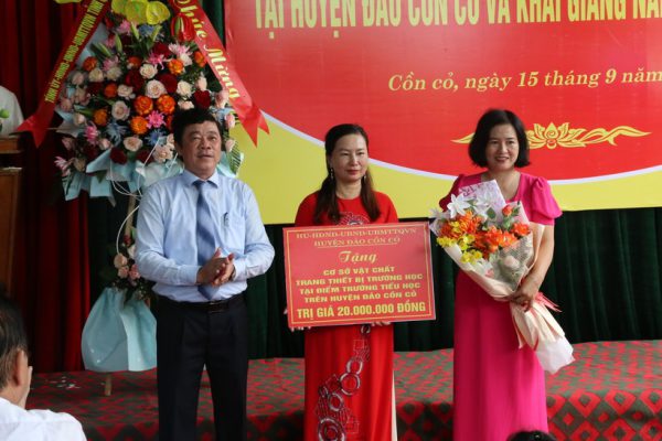 Nhân dịp khai giảng, UBND tỉnh, Sở GD&ĐT tỉnh Quảng Trị đã tặng quà cho điểm trường huyện đảo Cồn Cỏ, UBND huyện Gio Linh và UBND huyện đảo Cồn Cỏ cũng tặng quà cho điểm trường.