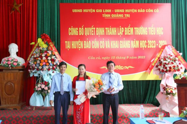 Ngày 15/9, UBND huyện Gio Linh phối hợp với UBND huyện đảo Cồn Cỏ (tỉnh Quảng Trị) tổ chức Lễ công bố quyết định thành lập điểm trường và khai giảng năm học mới 2023-2024 tại đảo Cồn Cỏ.
