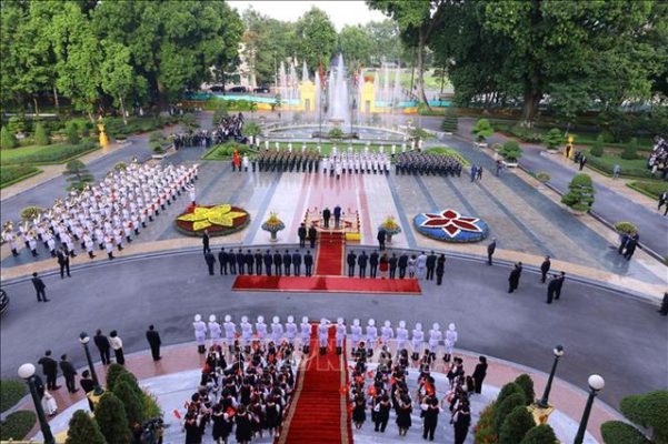 Chiều 10/9, Lễ đón chính thức Tổng thống Hoa Kỳ Joe Biden được tổ chức trọng thể tại Phủ Chủ tịch theo nghi thức cao nhất dành cho nguyên thủ quốc gia. Tổng Bí thư Nguyễn Phú Trọng chủ trì Lễ đón.