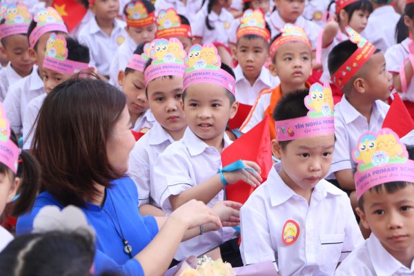 Trẻ lớp 1 vui ngày tựu trường để sẵn sàng chào đón năm học mới 2023-2024 tại Trường Tiểu học Yên Nghĩa (Hà Đông, Hà Nội). Ảnh minh họa: Đình Tuệ.