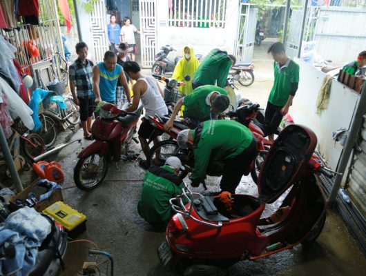 Sinh viên Đà Nẵng sửa chữa xe máy miễn phí cho người dân vùng ngập lụt