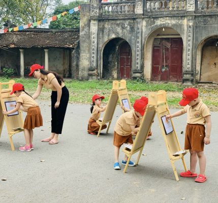 Cô trò trường mầm non A xã Thanh Liệt say mê với hoạt động vẽ tranh ngoài trời