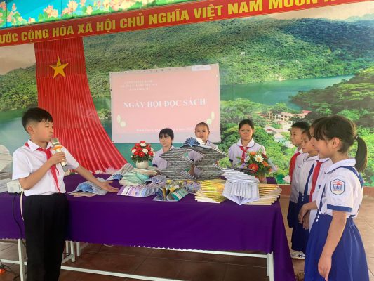 Các em học sinh tham gia “Ngày hội đọc” do nhà trường phát động