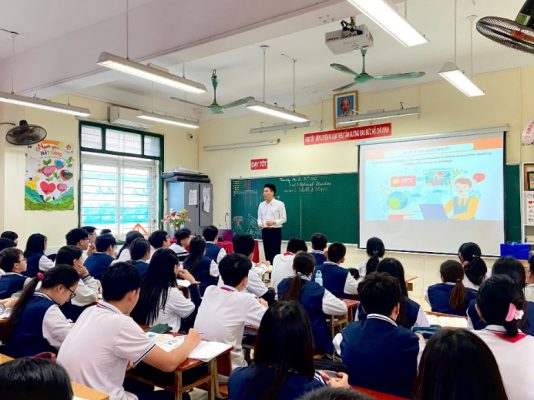 Tại đây, Thạc sỹ Xã hội học Hoàng Thục Anh đã chia sẻ với học sinh những câu chuyện thực tế để các em hiểu được rằng tình bạn đẹp được xây dựng trên nền tảng của sự chân thành, tin tưởng và sẻ chia. Đồng thời, hướng dẫn học sinh cách xử lý những tình huống mâu thuẫn, xung đột thường gặp trong tình bạn, đồng thời nhấn mạnh tầm quan trọng của việc thiết lập ranh giới cá nhân lành mạnh.