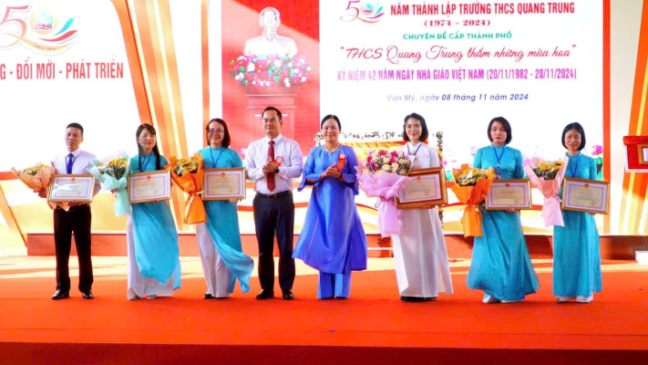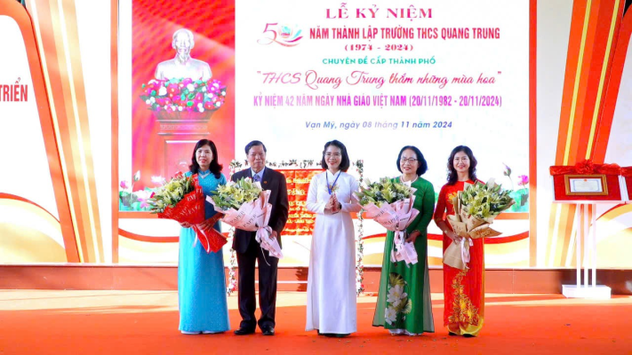 Buổi lễ hôm nay còn là dịp để các thế hệ học sinh và thầy cô trở về với mái trường xưa, cùng ôn lại những kỷ niệm tươi đẹp và cả những bài học đầy ý nghĩa từ thầy cô. Qua đây, Trường THCS Quang Trung bày tỏ lòng biết ơn sâu sắc đến các cấp lãnh đạo, phụ huynh và xã hội đã luôn đồng hành, giúp đỡ, tiếp sức cho hành trình 50 năm đầy tự hào của nhà trường./.