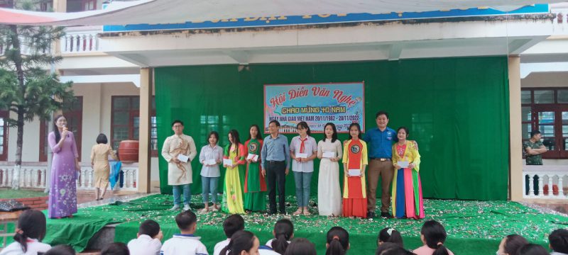 Nhà trưỡng cũng trao thưởng cho các thầy, cô giáo có thành tích trong giảng dạy dịp khai giảng năm học mới